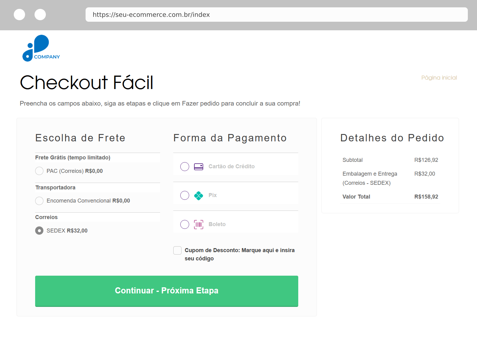 Tecnologia de checkout transparente eficaz que converte mais vendas